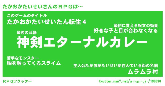 | 男性向けラノベタイトル風あだ名 | 『たかおかたいせいの憂鬱』 |