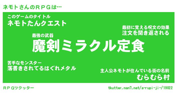 | ファンタジー風あだ名 | 『ネモフェル』『エターナルネモトー』 |