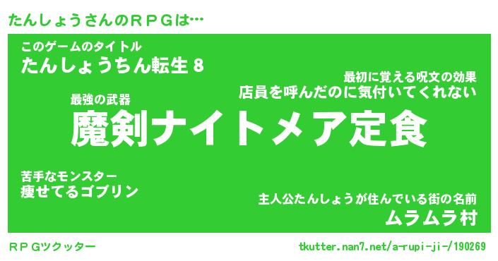 | 胡散臭い通販商品みたいなあだ名 | 『必ず成功する霊験あらたかなお札…その名も「たんしょう」』 |