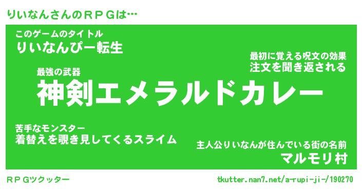 | ファンタジー風あだ名 | 『リイフェル』『エターナルリイナンー』 |