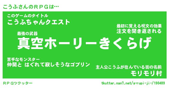 | 男性向けラノベタイトル風あだ名 | 『コウフアートオンライン』 |