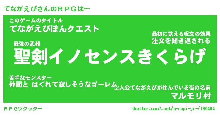 | ファンタジー風あだ名 | 『テナフェル』『エターナルテナガエビー』 |