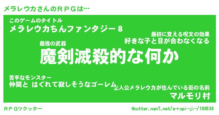 | ファンタジー風あだ名 | 『メラフェル』『エターナルメラレウカー』 |