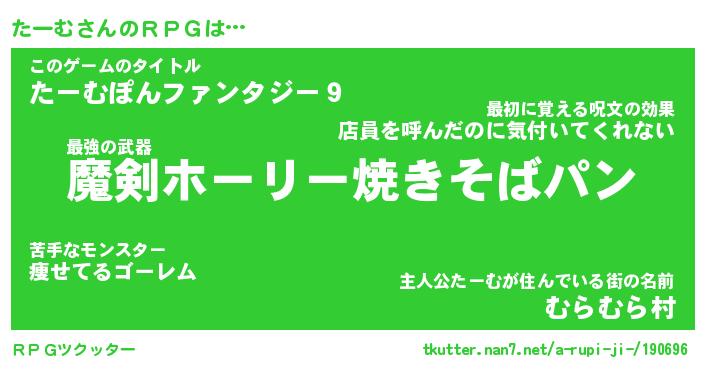 | 男性向けラノベタイトル風あだ名 | 『たーむの憂鬱』 |