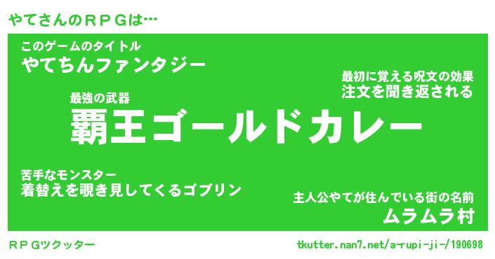 | ファンタジー風あだ名 | 『ヤテフェル』『エターナルヤテー』 |