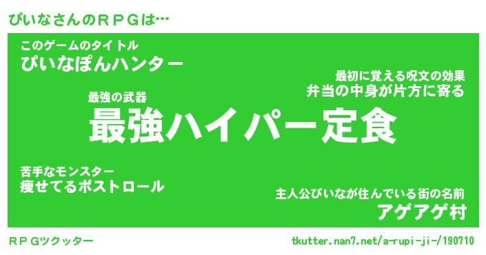 | 男性向けラノベタイトル風あだ名 | 『ピイナアートオンライン』 |