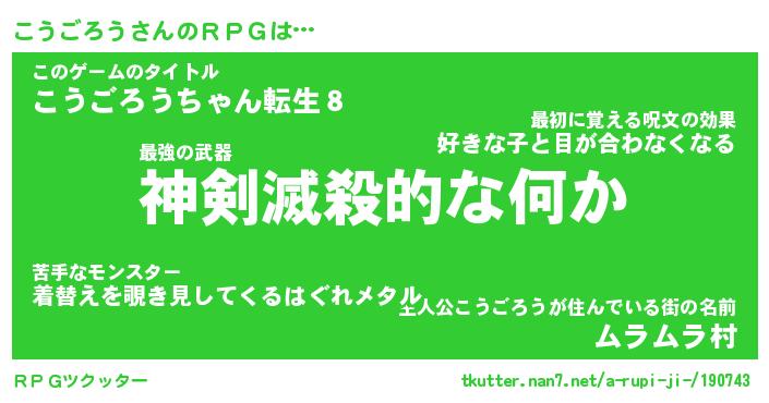 | ファンタジー風あだ名 | 『コウフェル』『エターナルコウゴロウー』 |