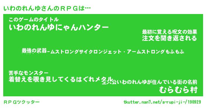 | 男性向けラノベタイトル風あだ名 | 『いわのれんゆの憂鬱』 |