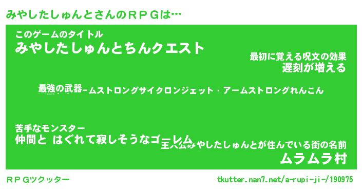 | 伝説のあだ名 | 『不死鳥の竜騎士みやしたしゅんと』 |