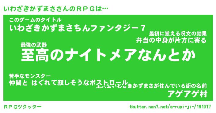 | 胡散臭い通販商品みたいなあだ名 | 『モテモテ間違いなし霊験あらたかなお札…その名も「いわざきかずまさ」』 |