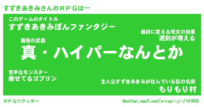 | 男性向けラノベタイトル風あだ名 | 『スズキアキミアートオンライン』 |