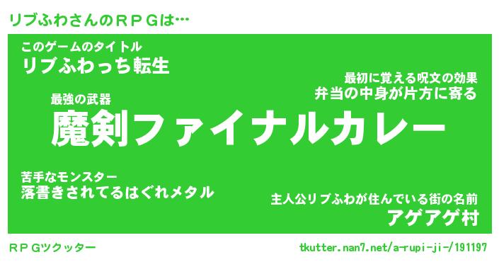 | 伝説のあだ名 | 『伝説の竜騎士リブふわ』 |