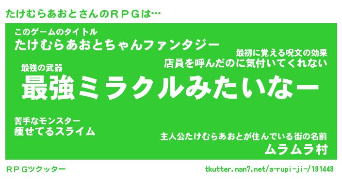 | 伝説のあだ名 | 『不死鳥の竜騎士たけむらあおと』 |