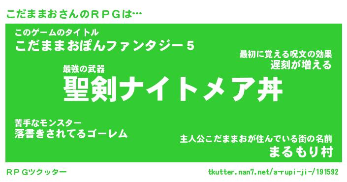 | ファンタジー風あだ名 | 『コダフェル』『エターナルコダママオー』 |