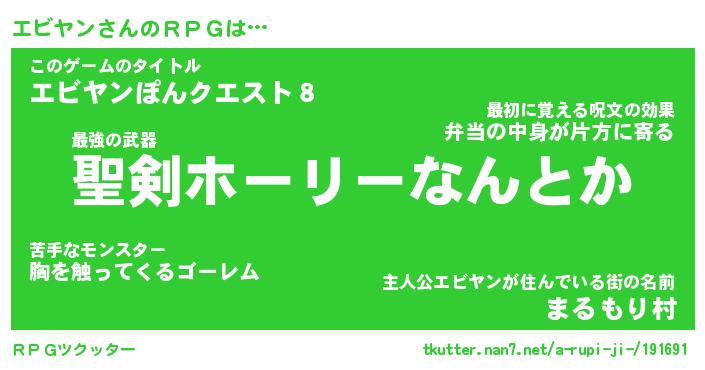 | ファンタジー風あだ名 | 『エビフェル』『エターナルエビヤンー』 |