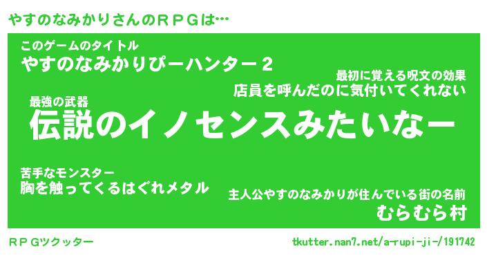 | 意味不明あだ名 | 『ペロリンやすのなみかり』 |