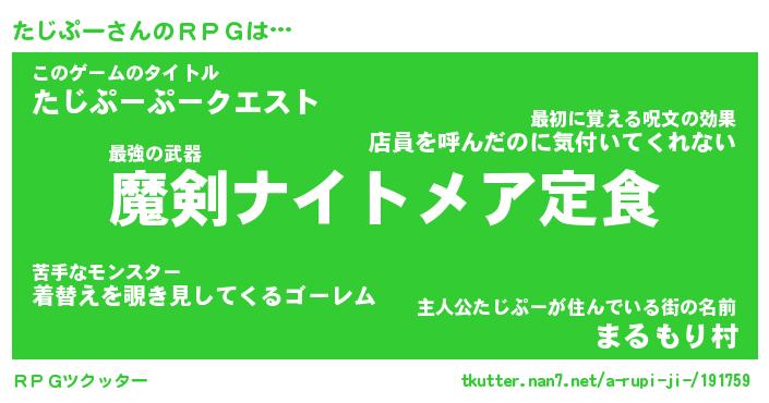 | 意味不明あだ名 | 『ペロリンたじぷー』『永久保存たじぷー』 |