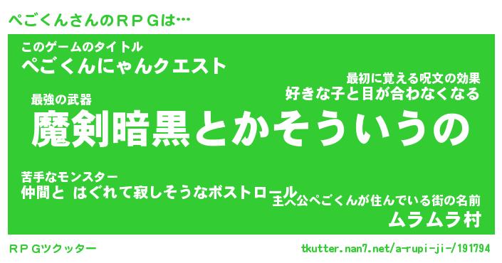 | 男性向けラノベタイトル風あだ名 | 『ぺごくんの憂鬱』 |