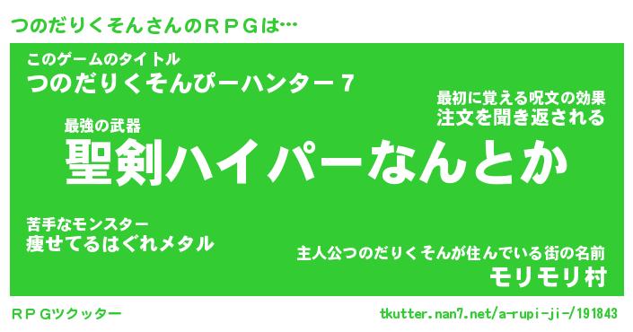 | 男性向けラノベタイトル風あだ名 | 『つのだりくそんの憂鬱』 |