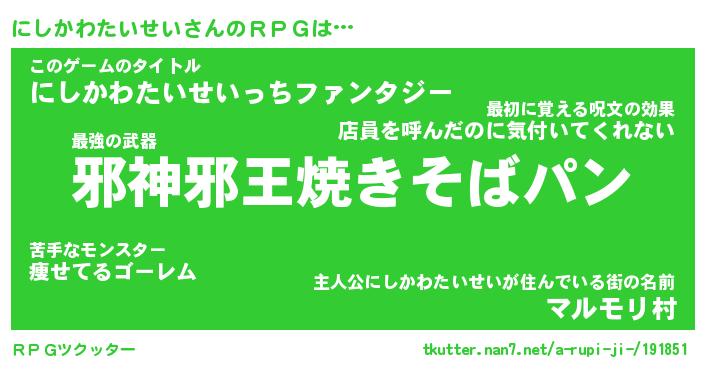 | 男性向けラノベタイトル風あだ名 | 『ニシカワタイセイアートオンライン』 |
