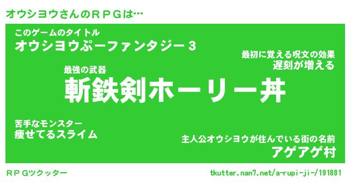 | ファンタジー風あだ名 | 『オウフェル』『エターナルオウシヨウー』 |