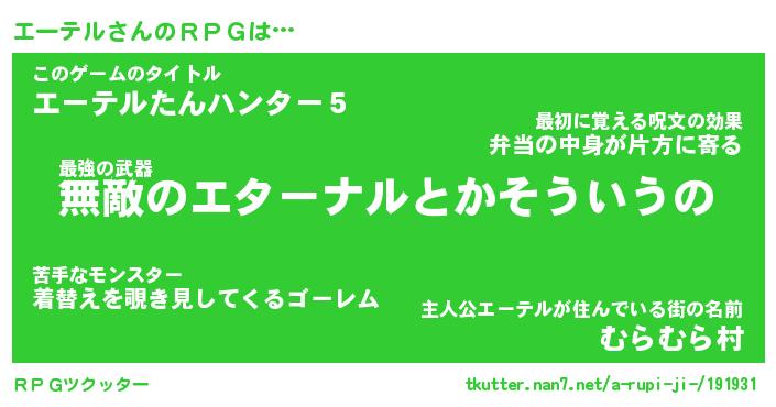 | ファンタジー風あだ名 | 『エーフェル』『エターナルエーテルー』 |