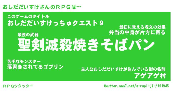 | 胡散臭い通販商品みたいなあだ名 | 『必ず成功する霊験あらたかなお札…その名も「おしだだいすけ」』 |