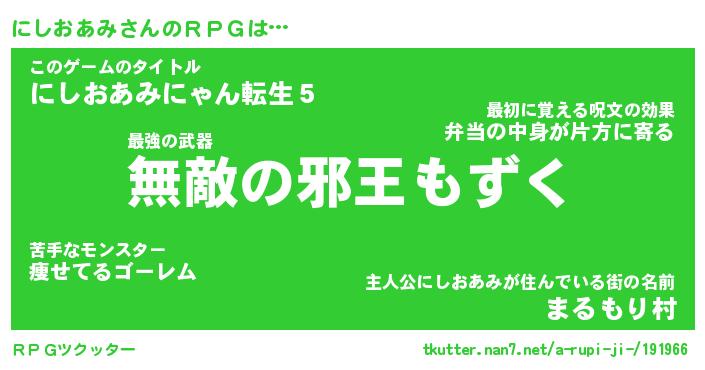 | 胡散臭い通販商品みたいなあだ名 | 『億万長者になれる水晶球…その名も「にしおあみ」』 |