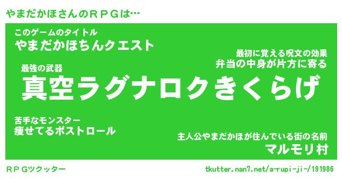 | 伝説のあだ名 | 『封印されし竜騎士やまだかほ』 |