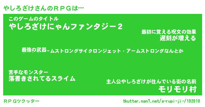 | 伝説のあだ名 | 『封印されし竜騎士やしろざけ』 |