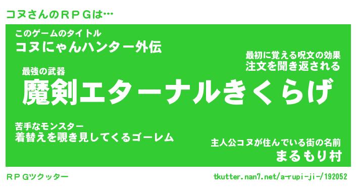 | ファンタジー風あだ名 | 『コヌフェル』『エターナルコヌー』 |