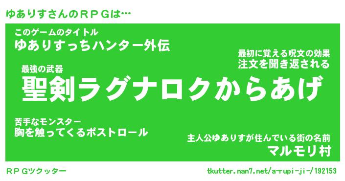| 伝説のあだ名 | 『伝説の竜騎士ゆありす』 |
