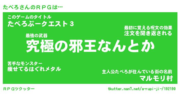 | ファンタジー風あだ名 | 『タベフェル』『エターナルタベロー』 |