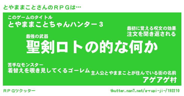 | ヒーロー風カッコイイあだ名 | 『スーパートヤママコト』『天弓騎士トヤ』 |