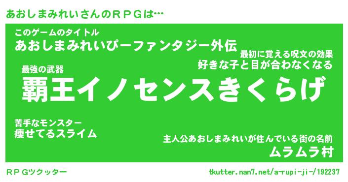 | 胡散臭い通販商品みたいなあだ名 | 『億万長者になれる霊験あらたかなお札…その名も「あおしまみれい」』 |