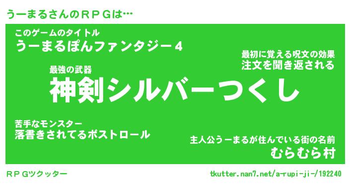 | 伝説のあだ名 | 『不死鳥の傭兵うーまる』 |