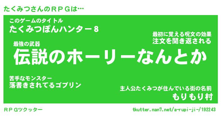 | ヒーロー風カッコイイあだ名 | 『スーパータクミツ』『魔戒騎士タク』 |