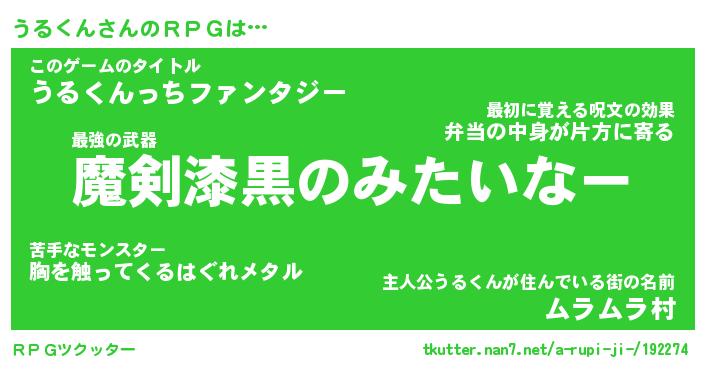 | 胡散臭い通販商品みたいなあだ名 | 『必ず成功する霊験あらたかなお札…その名も「うるくん」』 |
