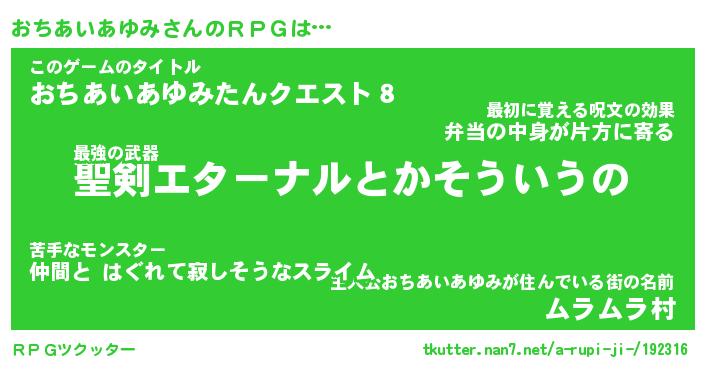 | 胡散臭い通販商品みたいなあだ名 | 『必ず成功する水晶球…その名も「おちあいあゆみ」』 |