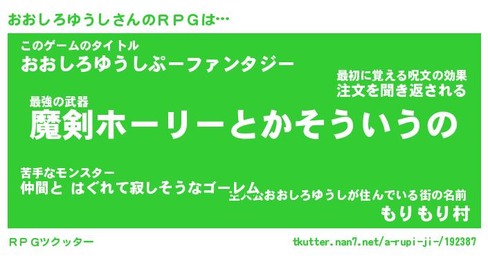 | 伝説のあだ名 | 『伝説の傭兵おおしろゆうし』 |