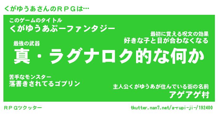 | ファンタジー風あだ名 | 『クガフェル』『エターナルクガユウアー』 |