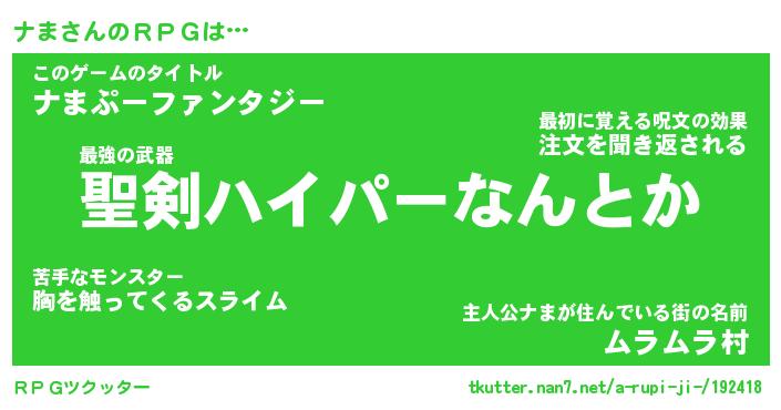 | ファンタジー風あだ名 | 『ナマフェル』『エターナルナマー』 |