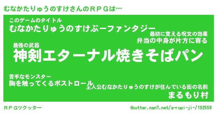 | ヒーロー風カッコイイあだ名 | 『スーパームナカタリュウノスケ』 |