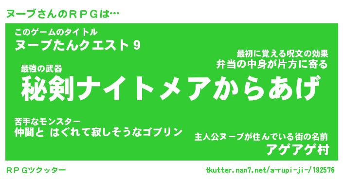 | 胡散臭い通販商品みたいなあだ名 | 『必ず成功する霊験あらたかなお札…その名も「ヌーブ」』 |