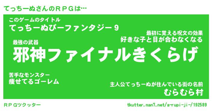 | 伝説のあだ名 | 『封印されし竜騎士てっちーぬ』 |