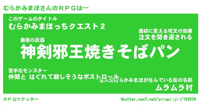 | 肩書あだ名 | 『むらかみまほ店長』『むらかみまほ担任』 |