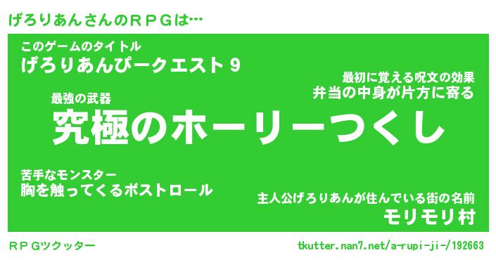 | 男性向けラノベタイトル風あだ名 | 『げろりあんの憂鬱』 |