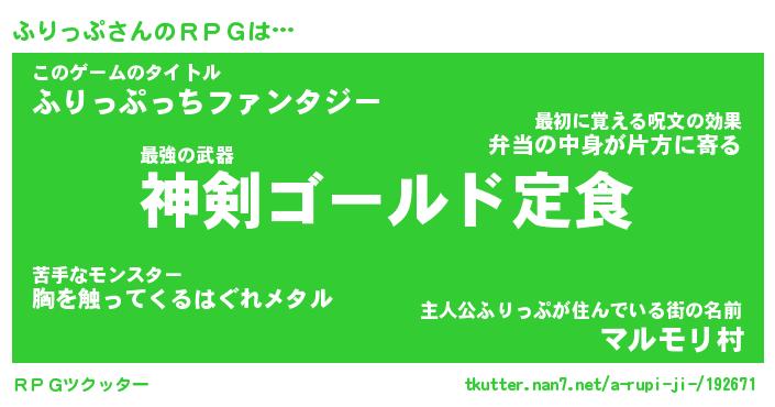 | 男性向けラノベタイトル風あだ名 | 『ふりっぷの憂鬱』 |