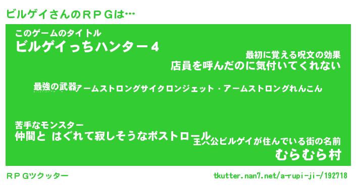 | ファンタジー風あだ名 | 『ビルフェル』『エターナルビルゲイー』 |
