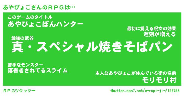 | 伝説のあだ名 | 『封印されし竜騎士あやぴょこ』 |